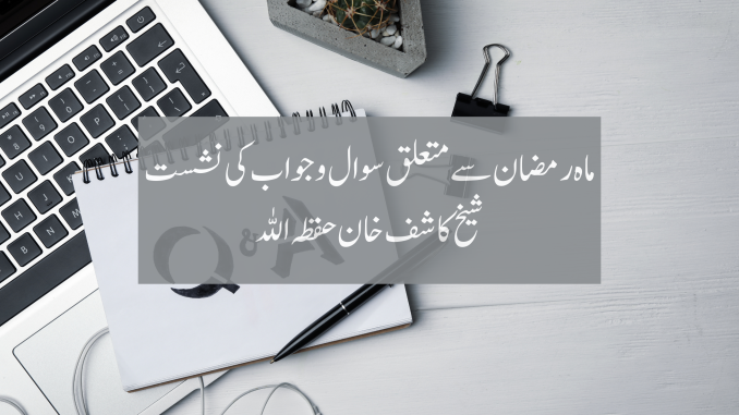 ماہ رمضان سے متعلق سوال و جواب کی نشست – شیخ کاشف خان 3 April 2024 طارق بن علی بروہی فقہ و عبادات مقالات Comments Off on ماہ رمضان سے متعلق سوال و جواب کی نشست – شیخ کاشف خان بسم اللہ الرحمن الرحیم آڈیو تراویح رمضان روزہ کاشف خان