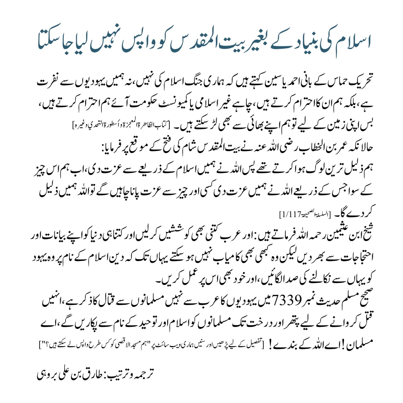 اسلام کی بنیاد کے بغیر بیت المقدس کو واپس نہیں لیا جاسکتا اسلام کی بنیاد کے بغیر بیت المقدس کو واپس نہیں لیا جاسکتا