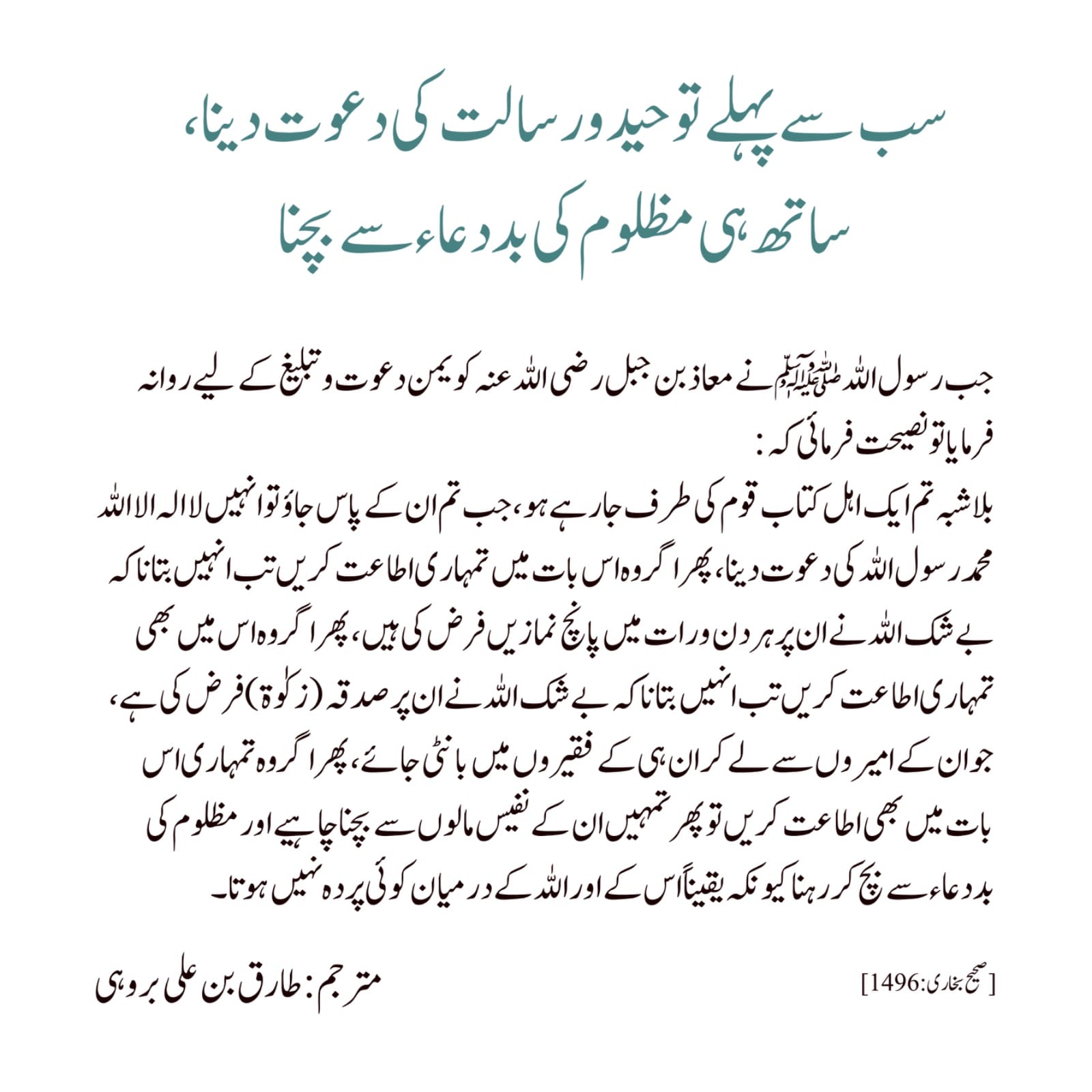 سب سے پہلے توحید کی دعوت اور مظلوم کی بددعاء سے بچنا سب سے پہلے توحید کی دعوت اور مظلوم کی بددعاء سے بچنا